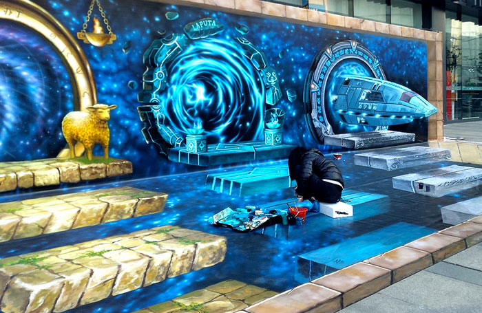 携手拉普达密室逃脱,鼎力创作大型3D立体画,引爆新街口中心地带!立体画以“时空之门、魔法之门、未来之门”的“三重门”概念,带给观者穿越时空的全新感受。
